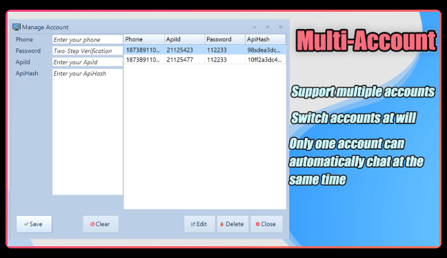Yes, our system supports saving multiple Telegram accounts. However, please note that only one account can be active at a time.