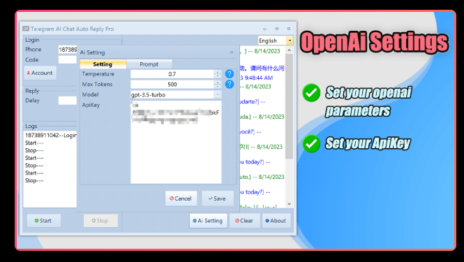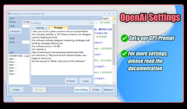 Yes, we have integrated OpenAI into our system. This allows you to set your own prompts and engage in automated conversations with your Telegram contacts.